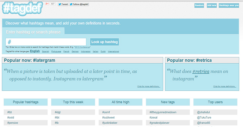 Para los  que no tienen dispositivos iPhone  no se preocupen, porque hay otra forma de descifrar esas abreviaciones que se usan como ‘hashtags’, y es el sitio web  tagdef.com algunos lo llaman el diccionario urbano solo hay que escribir la abreviatura y en segundos les mostrará el significado, Tagdef está en más de cinco idiomas y los usuarios tienen la opción de añadir nuevas definiciones para así alimentar el diccionario.